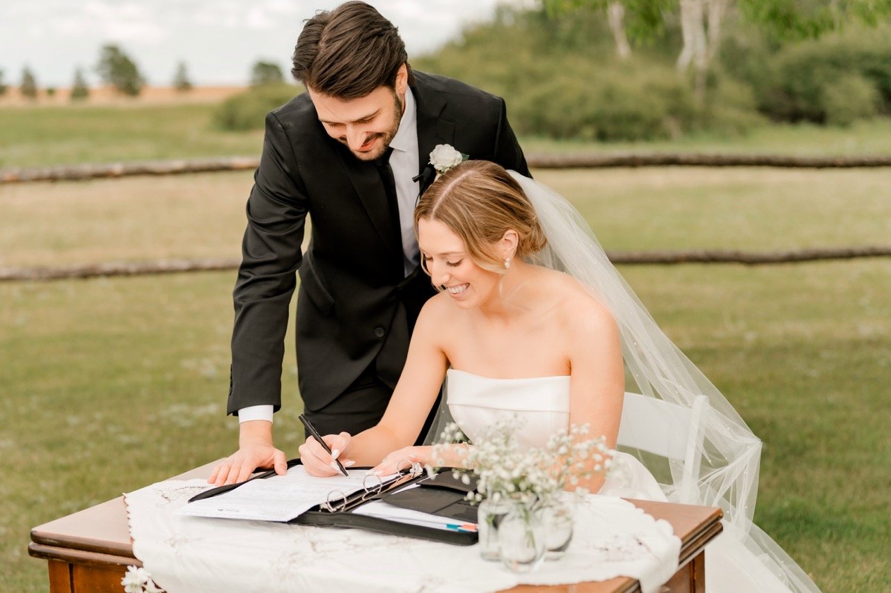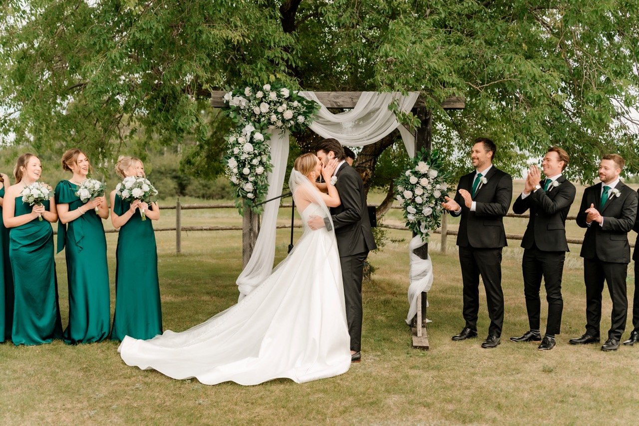 Brittany and Mikhalβs wedding day was shared with their closest family and friends at the beautiful Boothill Wedding Venue in Manitoba. The gentle, mild weather and elegant details created the perfect atmosphere for their heartfelt celebration. Surrounded by the people who mean the most to them, their day unfolded with love, warmth, and an effortless sense of beauty. We are so grateful to have been there to capture every moment.